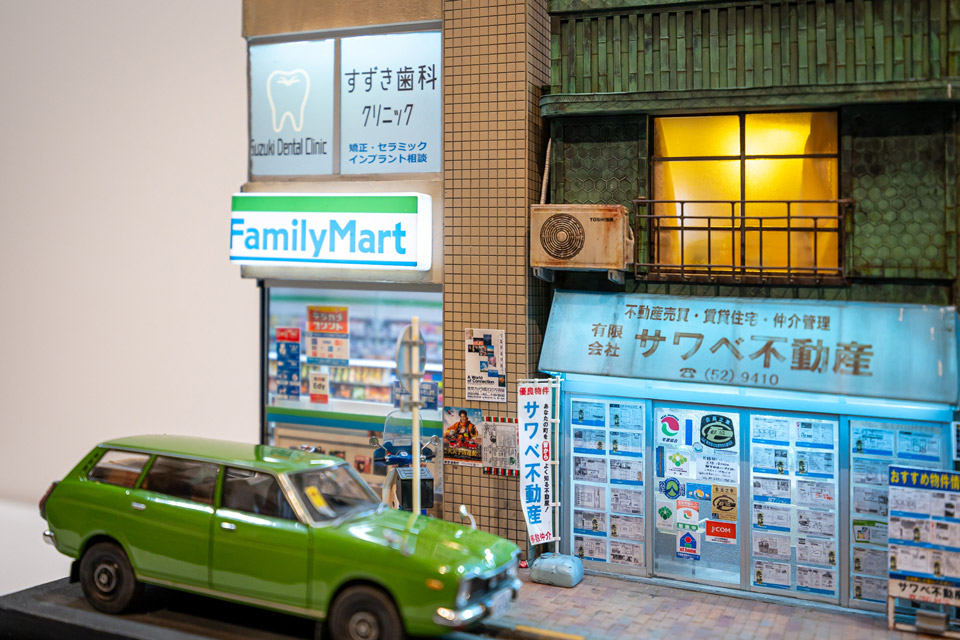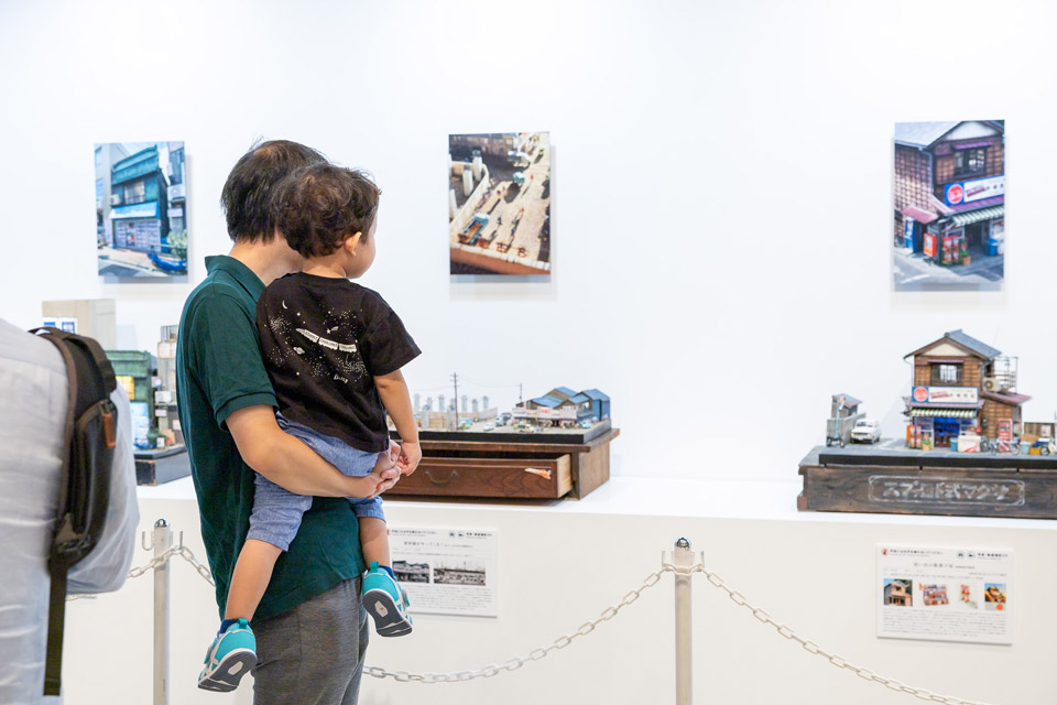 「好きなものを撮って、見せて、つながる」の代表格であるジオラマの精巧な実物を、それを撮影した写真とともに展示。