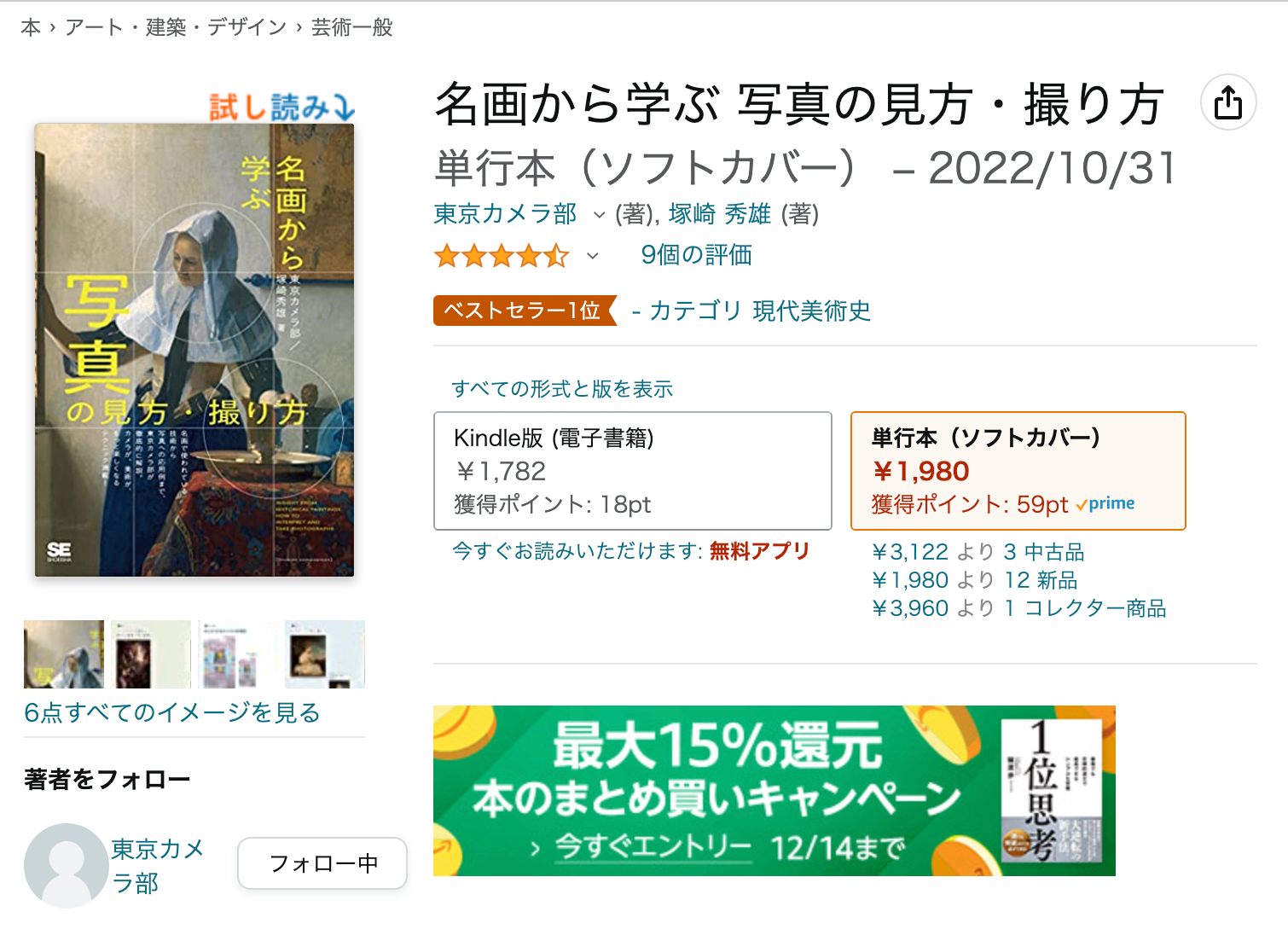 多数の方々のご支援により、「名画から学ぶ 写真の見方・撮り方」Amazon 売れ筋ランキング(現代美術史)発売から一ヶ月間1位継続中となりました。(弊社が確認した範囲)全国の書店さんでも面陳列してくださっています。