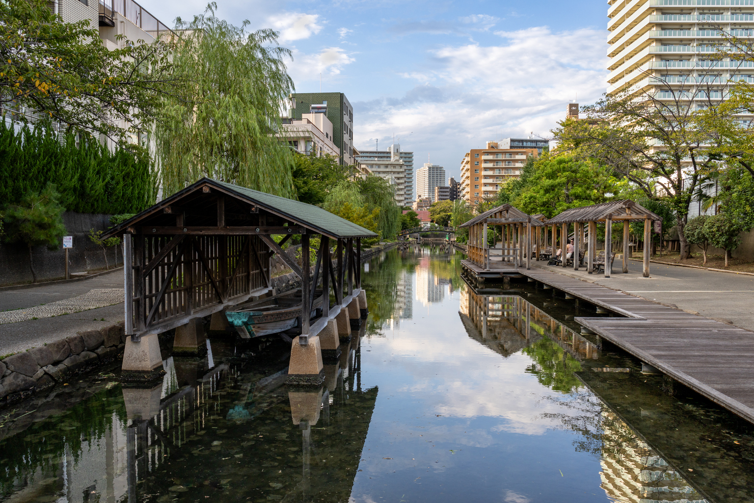 ある晴れた夏の日、木場親水公園を散歩した際の写真です。手前に見える和船や、奥に見える木製の橋には江戸の情緒が感じられ、川面にはそれらの景色と青空が反射していました。木材の町として水運と共に発展してきた歴史を感じられる公園に、思わず散歩の足を止めて写真を撮りました。