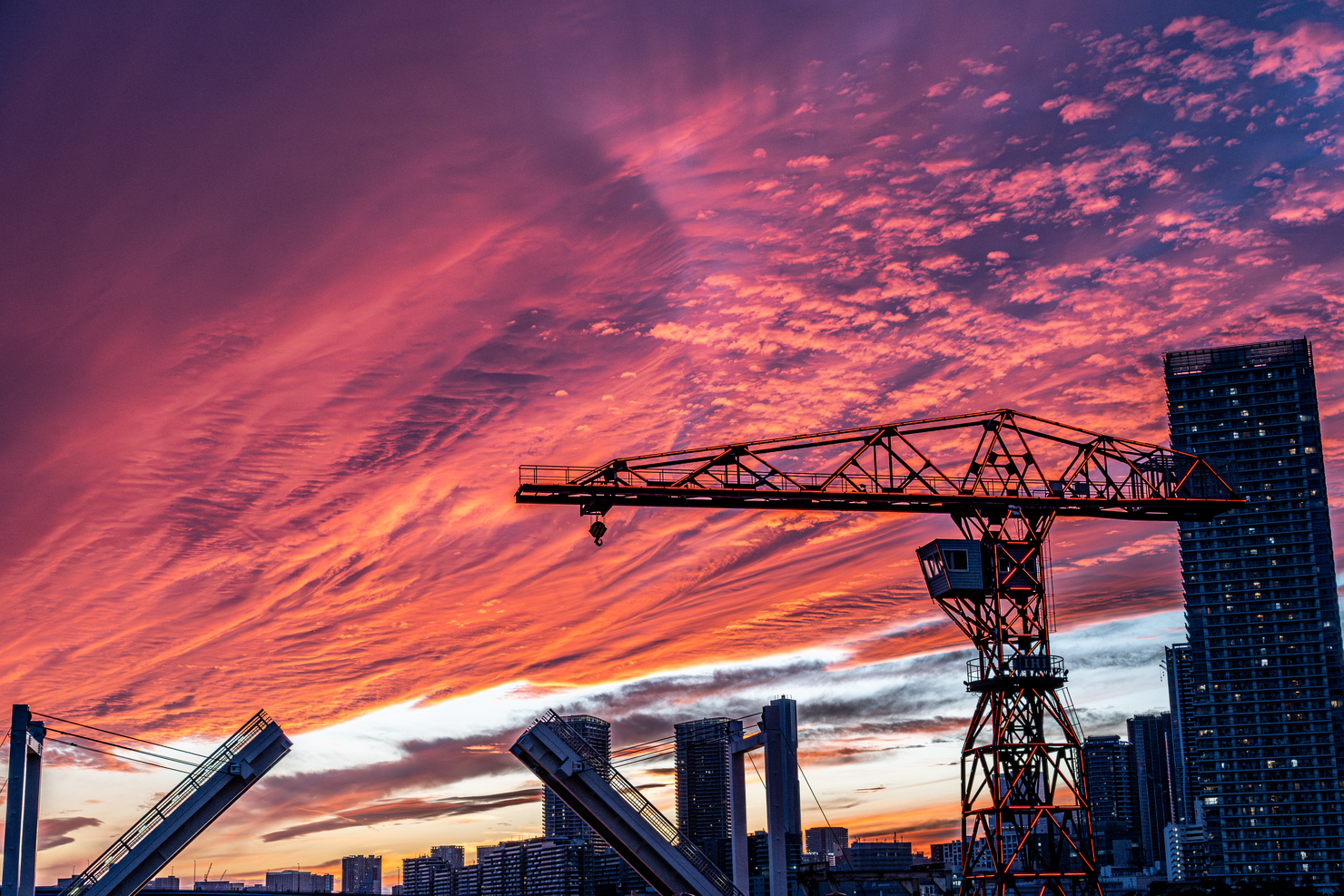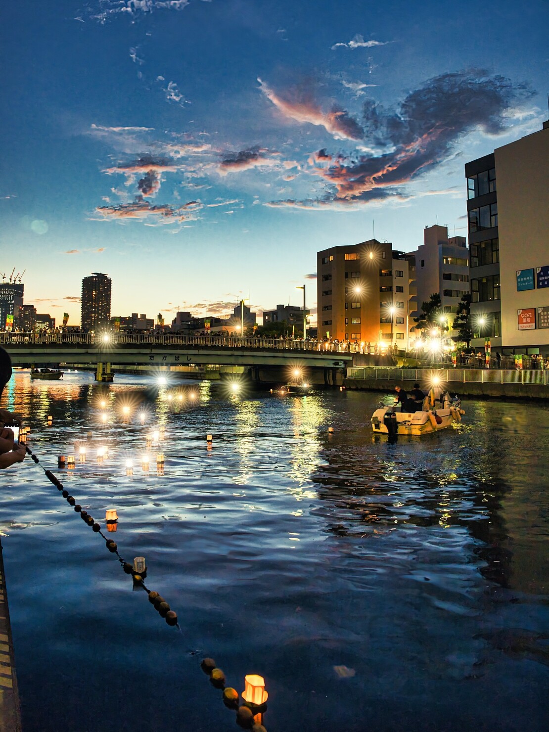 こちらは大好きな場所のひとつ、萬年橋からの清洲橋。夕暮れのグラデーションが隅田川の向こうのビル群のシルエットに落ちる舞台の上にまるでドレスを纏った貴婦人のような輝く清洲橋。萬年橋の無機質な鉄骨でありながら薄明かりに照らされた優しい色合いとその影の組み合わせがなんとも言えない瞬間だったので写真に納めました。