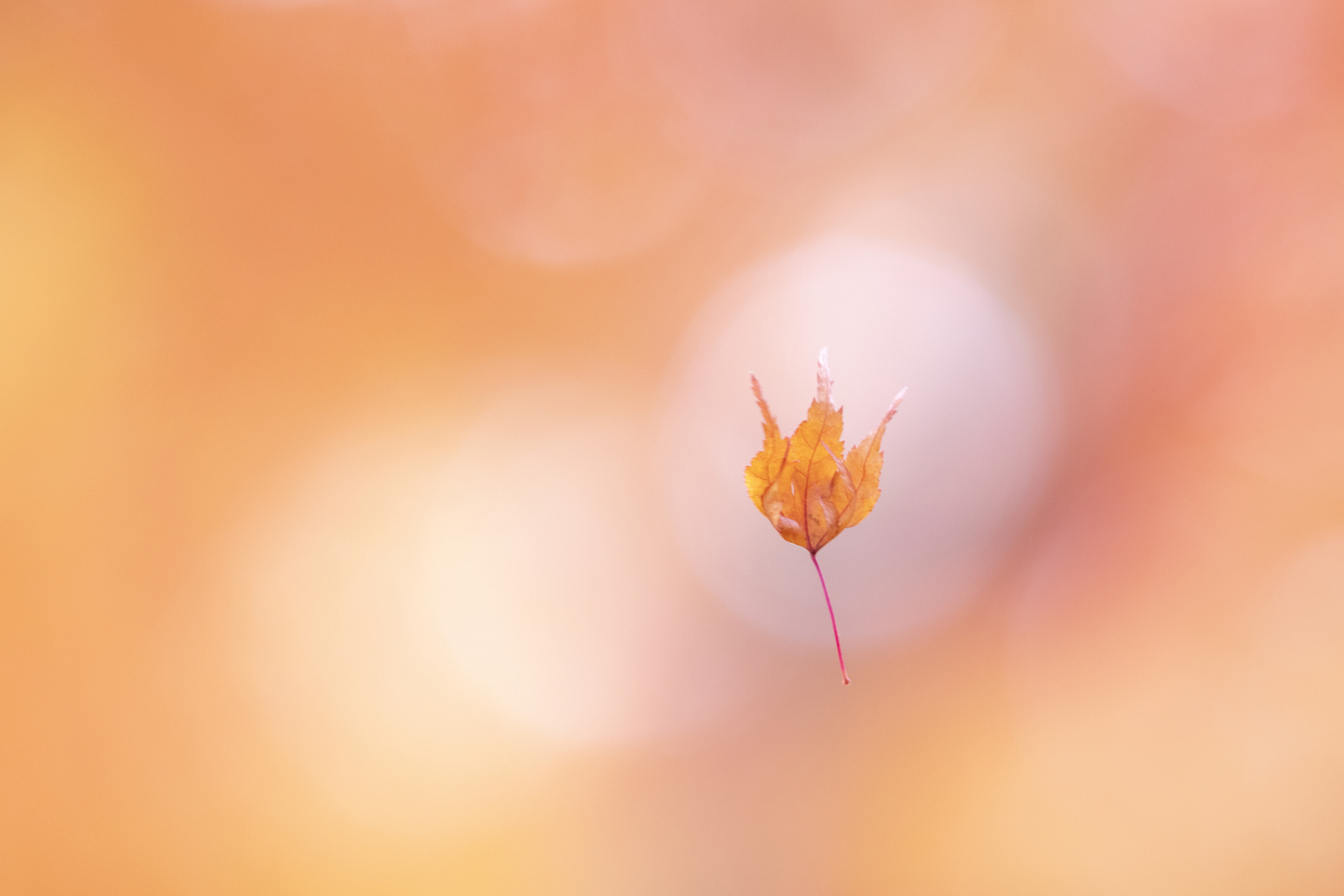 深まる秋の中、多くのもみじが枝に別れを告げ寂しく風に舞っていました。ふと見上げると一枚の萎れた葉っぱが蜘蛛の糸に引っかかり光の中で揺れていました。まるで最後の別れを告げるように私に手を振っているではありませんか。カメラを向けたその瞬間「ありがとう!」って両手を上げ風に乗って行ってしまいました。晩秋の小さな出会いでした。